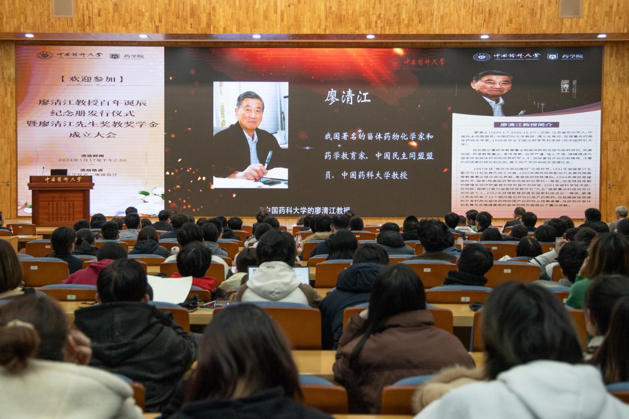 为纪念我国甾体激素药物领域的重要开拓者之一,我国著名的甾体药物化学家、药学教育家廖清江教授的百年诞辰,宣传并弘扬其精神风范,1月17日下午,公司在江宁校区二楼报告厅隆重举行“廖清江教授百年诞辰纪念册发行仪式暨‘廖清江先生奖教奖学金’成立大会”。williamhill副董事长齐炼文、廖清江教授亲属代表、企业代表、员工代表、集团相关职能部门负责人、英国·威廉希尔williamhill(中国)-官方网站 版权所有领导班子成员及英国·威廉希尔williamhill(中国)-官方网站 版权所有师生代表近300人参加了本次会议。会议由英国·威廉希尔williamhill(中国)-官方网站 版权所有党委书记张仕英主持。