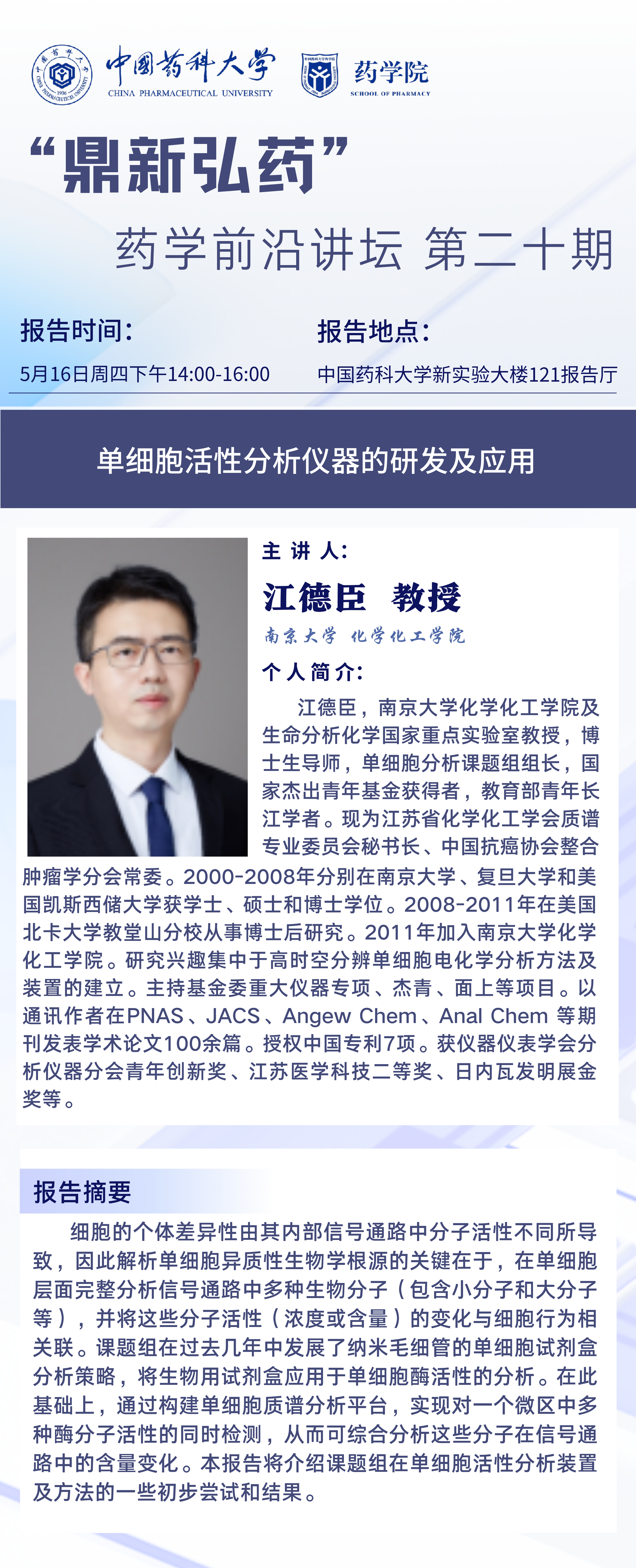 “鼎新弘药”药学前沿讲坛第二十期通知