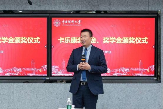 卡乐康中国总经理雷鹏表达了对母校的感激之情,以及对获奖师生的祝贺,鼓励获奖师生更加锐意进取,携手为祖国医药事业发展贡献力量。