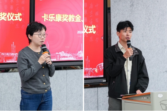 药剂系刘莉莎老师代表获奖教师感谢卡乐康及公司对其科研和教学的支持与帮助,表示将继续通过科研反哺教学,用科研成果育人,为williamhill官网人才培养工作贡献力量。英国·威廉希尔williamhill(中国)-官方网站 版权所有2021级药物制剂专业本科生李振海同学作为获奖员工代表发言,他代表获奖员工向卡乐康公司表达了诚挚的感谢,表示未来将会继续积极探寻自身价值,以满腔的热情和坚定的信念投身于祖国的医药事业,在祖国的医药事业中发光发热。