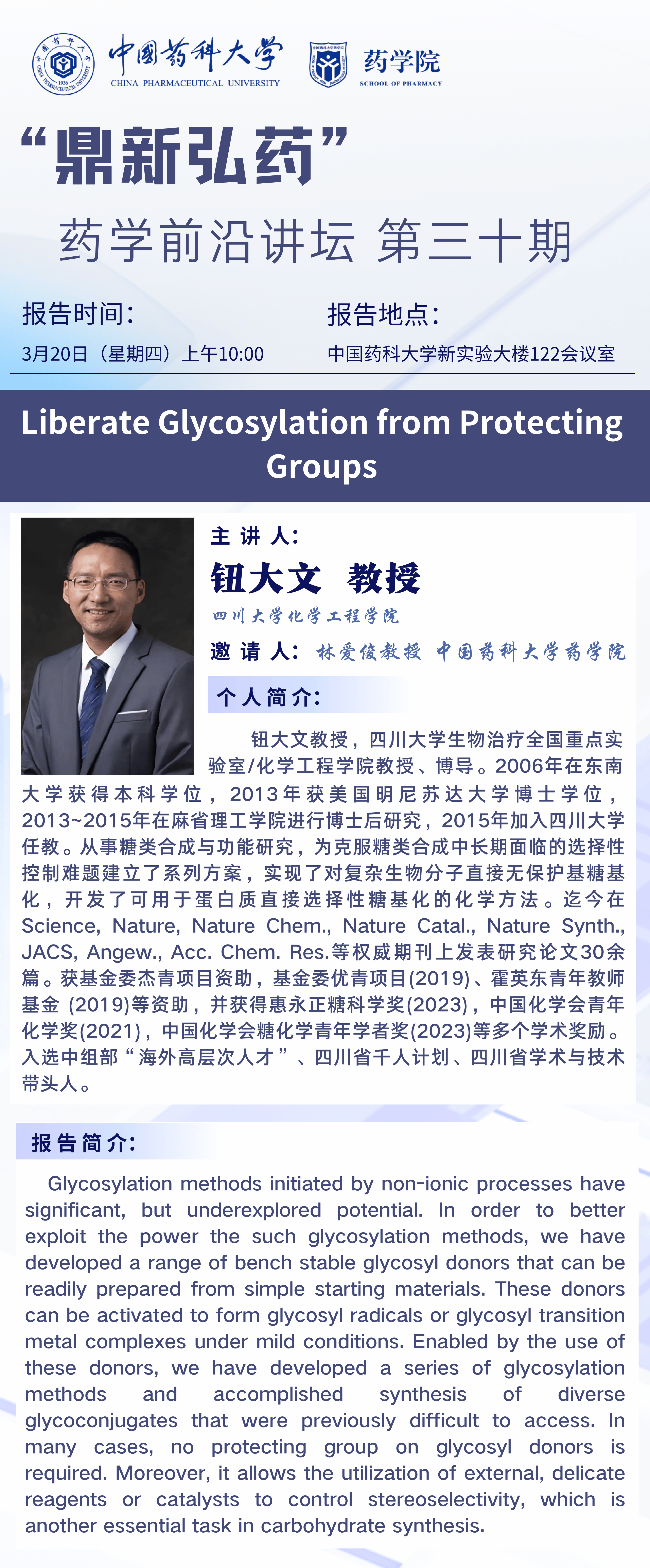 “鼎新弘药”药学前沿讲坛第三十期通知