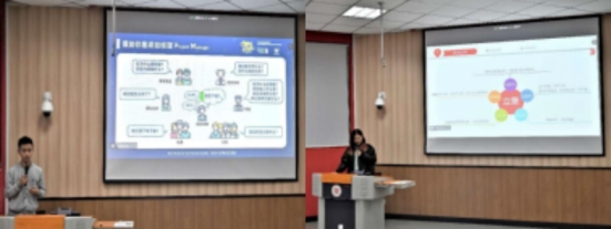 庞皓同学重点介绍了商业模式的内涵、商业画布的使用方法及其台前、幕后的商业模式元素;陈玮娇同学分享了项目立意的五个要素、创新的组成要素,强调了团队合作对于项目至关重要的作用。