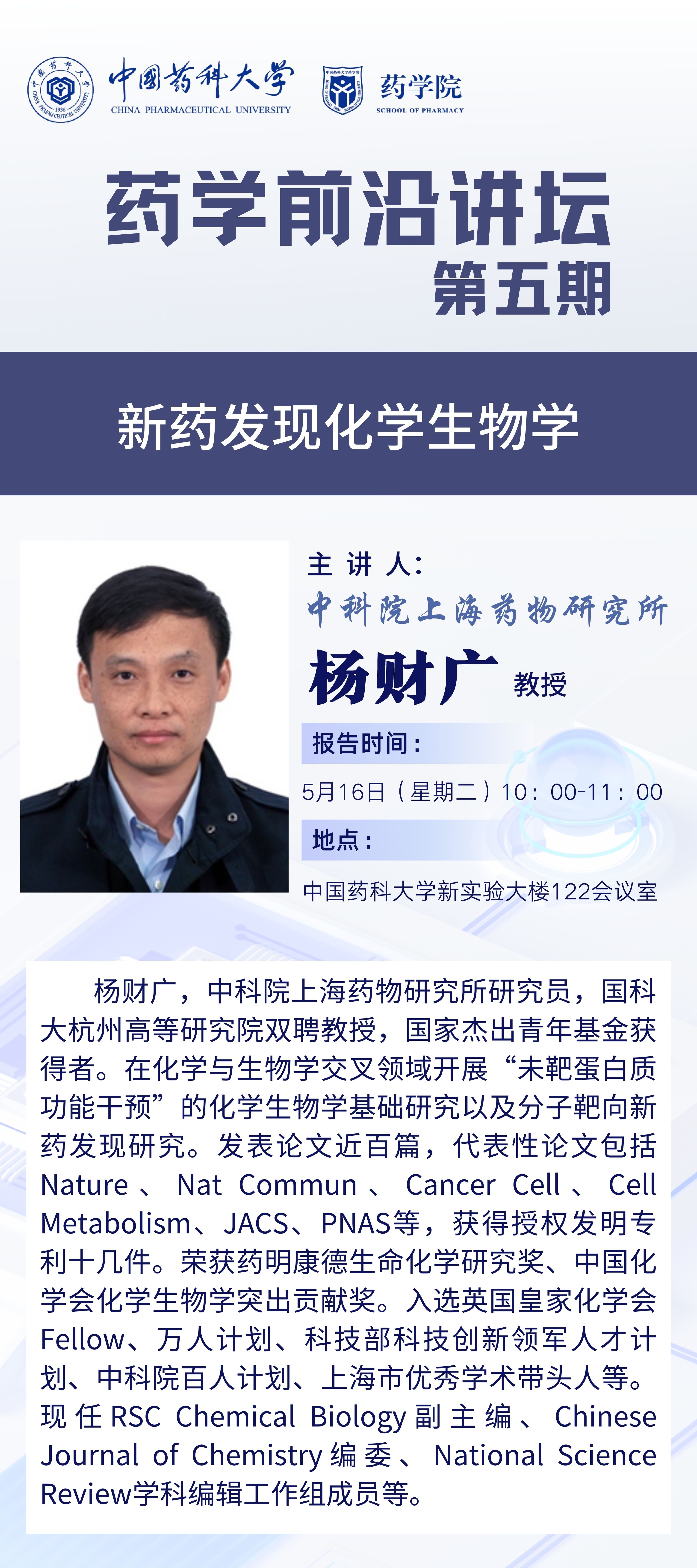 williamhill官网第五期药学前沿讲坛通知