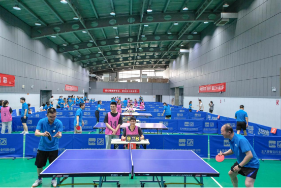 金能明书记和陆涛副董事长共同为本次比赛开球。本次比赛分为上午场和下午场,包括团体赛、男子单打和女子单打项目,执行乒乓球比赛最新规则,采用三局二胜制。比赛现场精彩纷呈,气氛热烈。赛场上球拍飞舞,银球飞旋;参赛教职工灵敏矫健、精神抖擞、各施技艺;直拍、横拍、扣球、旋转球、弧线球等精彩场面频现,推挡、快拉、扣杀,打法各不相同,赢得现场观众阵阵喝彩。团体赛比赛悬念迭出、扣人心弦,充分彰显出团队协作的力量。个人赛运动员们在你来我往之间以球会友,将体育精神和精湛球技精彩展现。