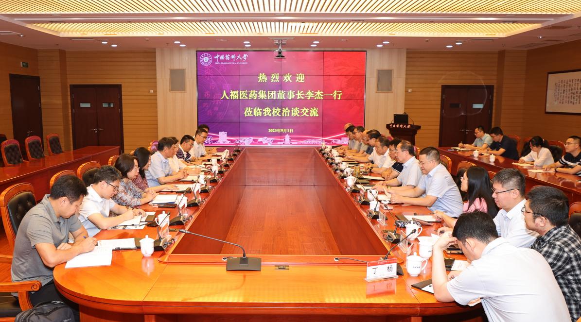 9月1日,人福医药集团董事长李杰一行来公司洽谈交流。董事长郝海平、副董事长陆涛及科技处、williamhill官网、中williamhill官网等单位负责人和教授代表出席交流会。会议由副董事长陆涛主持。