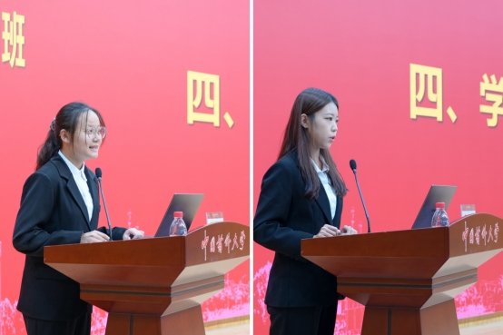 徐菁、李梓萱两名同学作为学员代表依次上台分享学习心得,表示将认真消化吸收培训内容,今后不断加强政治理论学习,筑牢理想信念根基,时刻以一名党员的标准严格要求自己,发挥表率作用,以实际行动争取早日加入党组织。