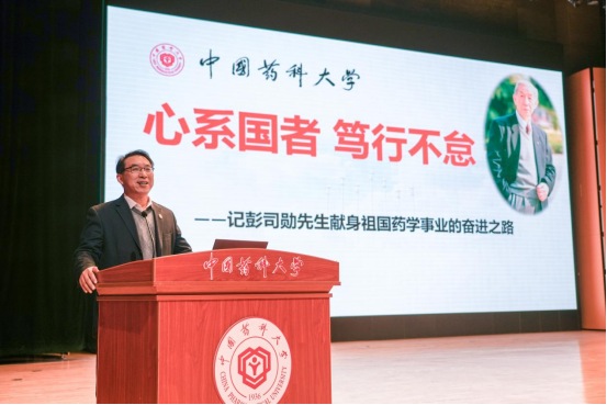 邬校助结合时代背景与历史使命,对彭司勋院士立志为药学、为祖国、为人民做贡献的崇高精神进行了详细讲解。彭司勋院士的成长历程充满了艰辛与挑战,经历过战争与留学的磨砺,却始终以“诚恳、勤奋、奉献”为座右铭,全身心地投入到教学和科研工作中,为祖国药学事业做出了巨大贡献,他的故事激励着一代代药大人接续奋斗,砥砺前行。在场师生听后无不为之动容,深受感动与震撼。