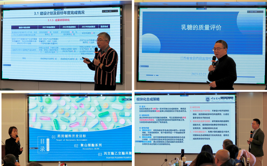 随后,孙春萌教授作重点实验室工作报告,详细介绍了重点实验室2023年建设情况及三年期建设目标完成情况;江苏省食品药品检验监督研究院检验技术研究室主任袁耀佐、南京威尔药业集团研究院(江苏省水溶性药用辅料工程技术研究中心)副经理王娅、williamhill药剂系副教授何东升分别就各单位研究进展进行主题报告。